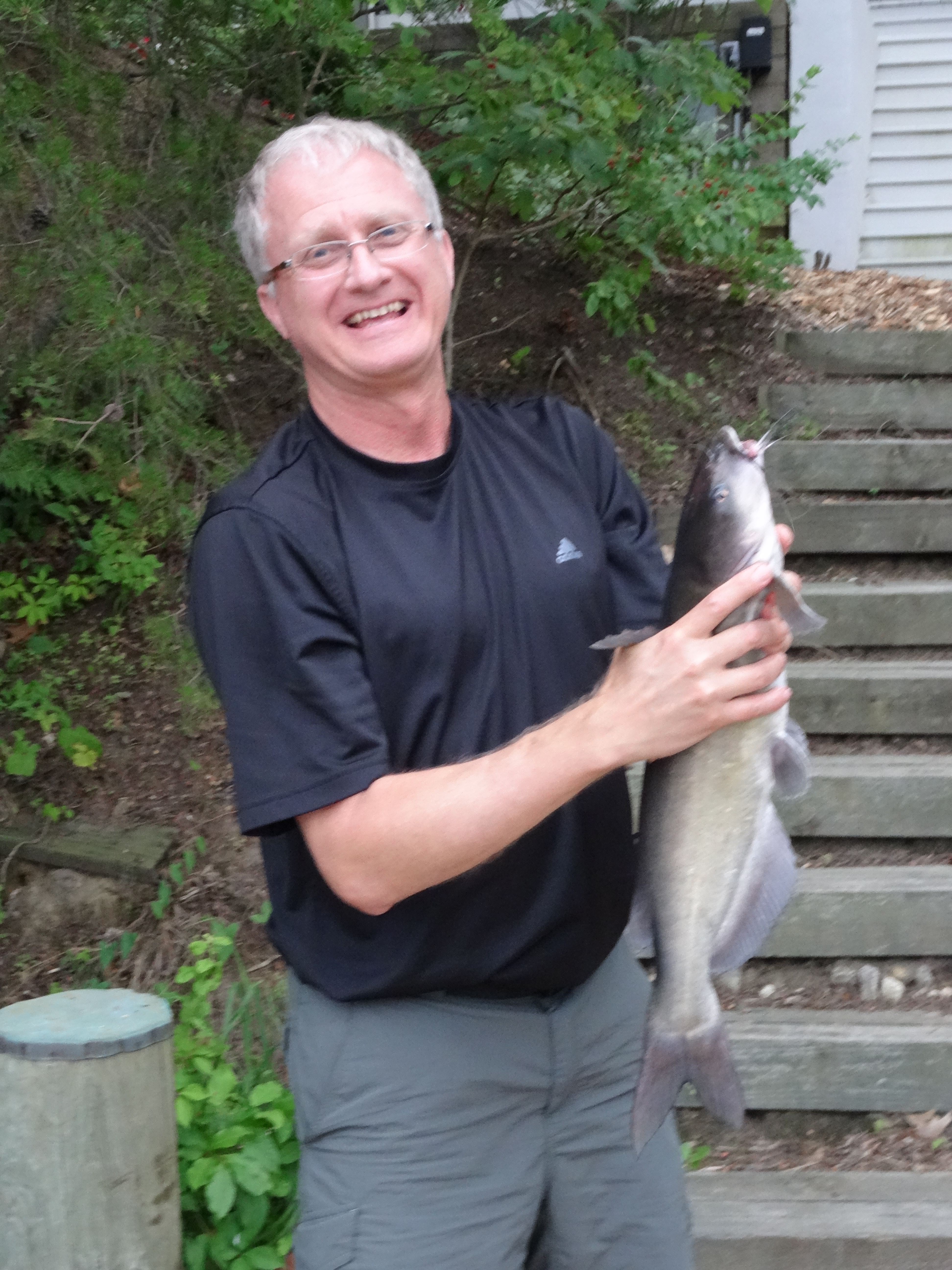 Trey and Lindsey headed directly to check out the dock and in only a few minutes Trey was set up to fish. Unlike the fish in North Carolina, the Maryland fish were very cooperative – Trey caught 28 small bass and one keeper-sized catfish. He released each fish immediately, but as the smile on his face indicates, he had a fabulous time!
